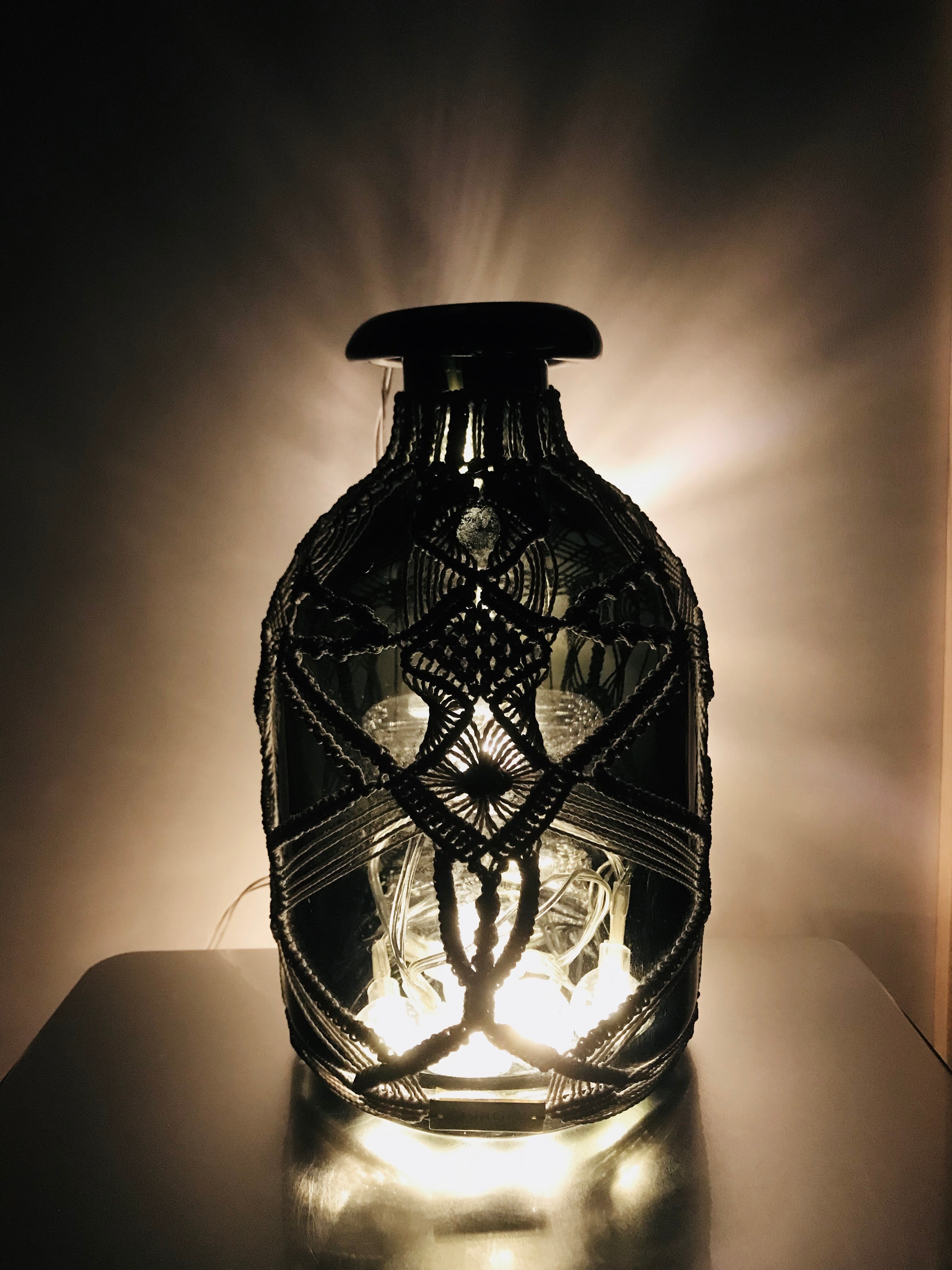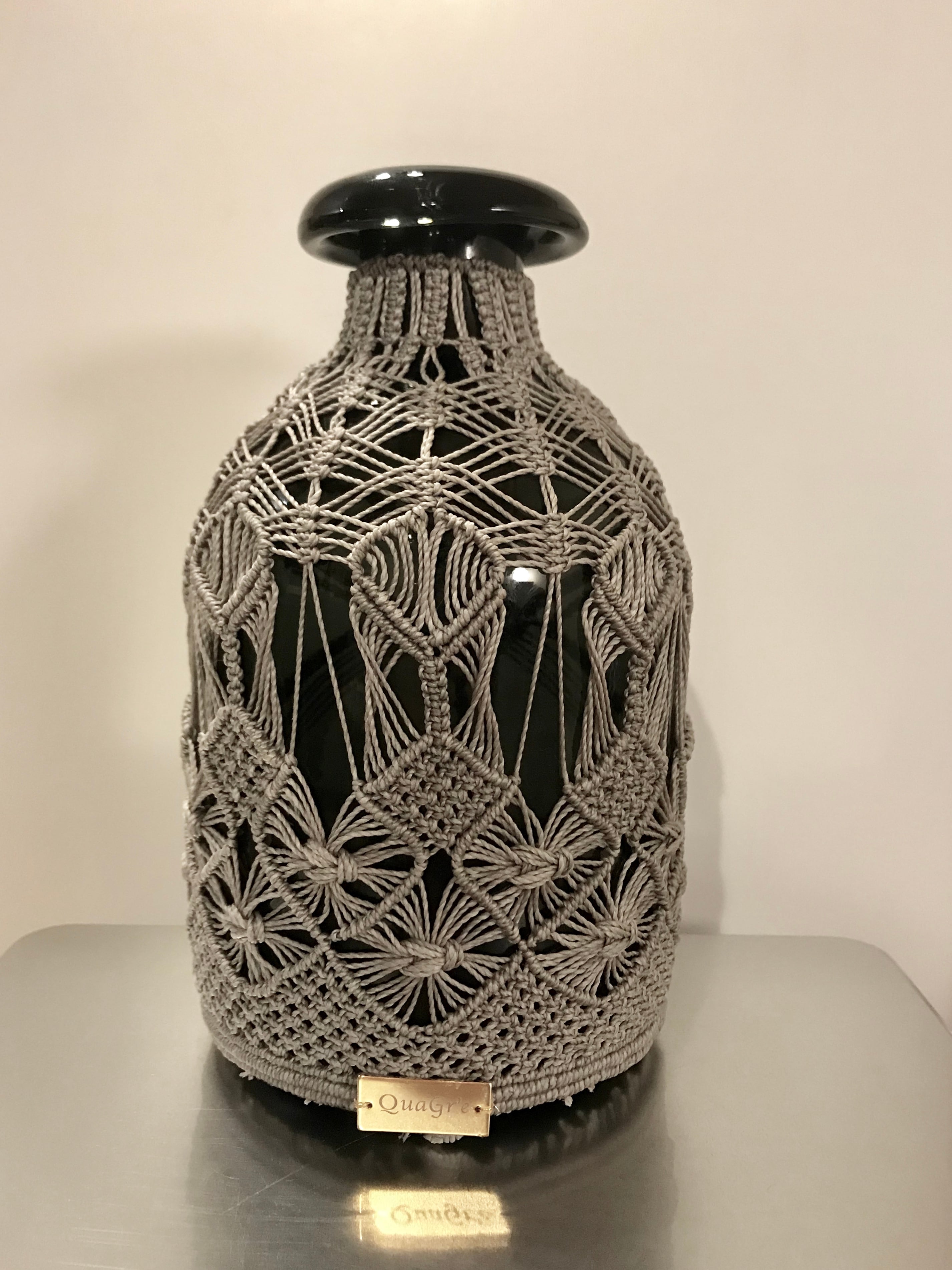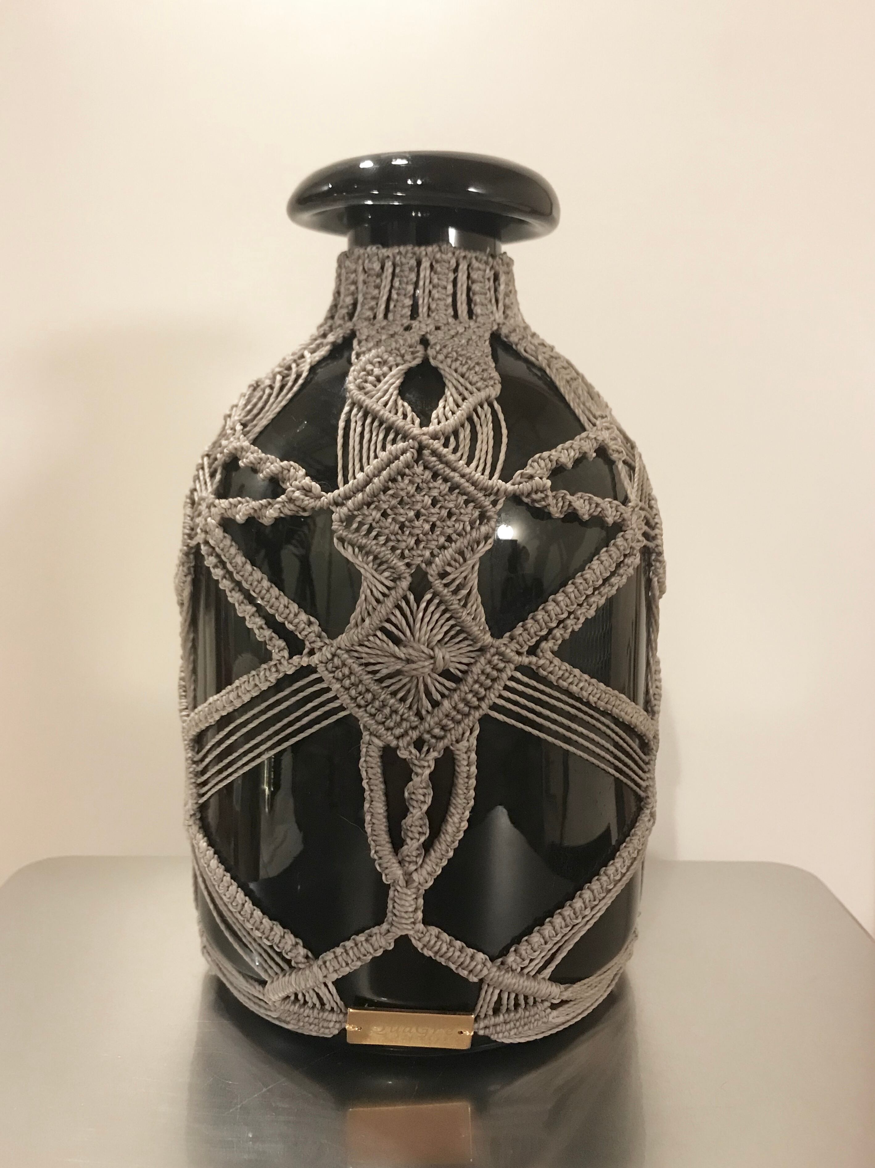 黒い花びんをマクラメで包みました。